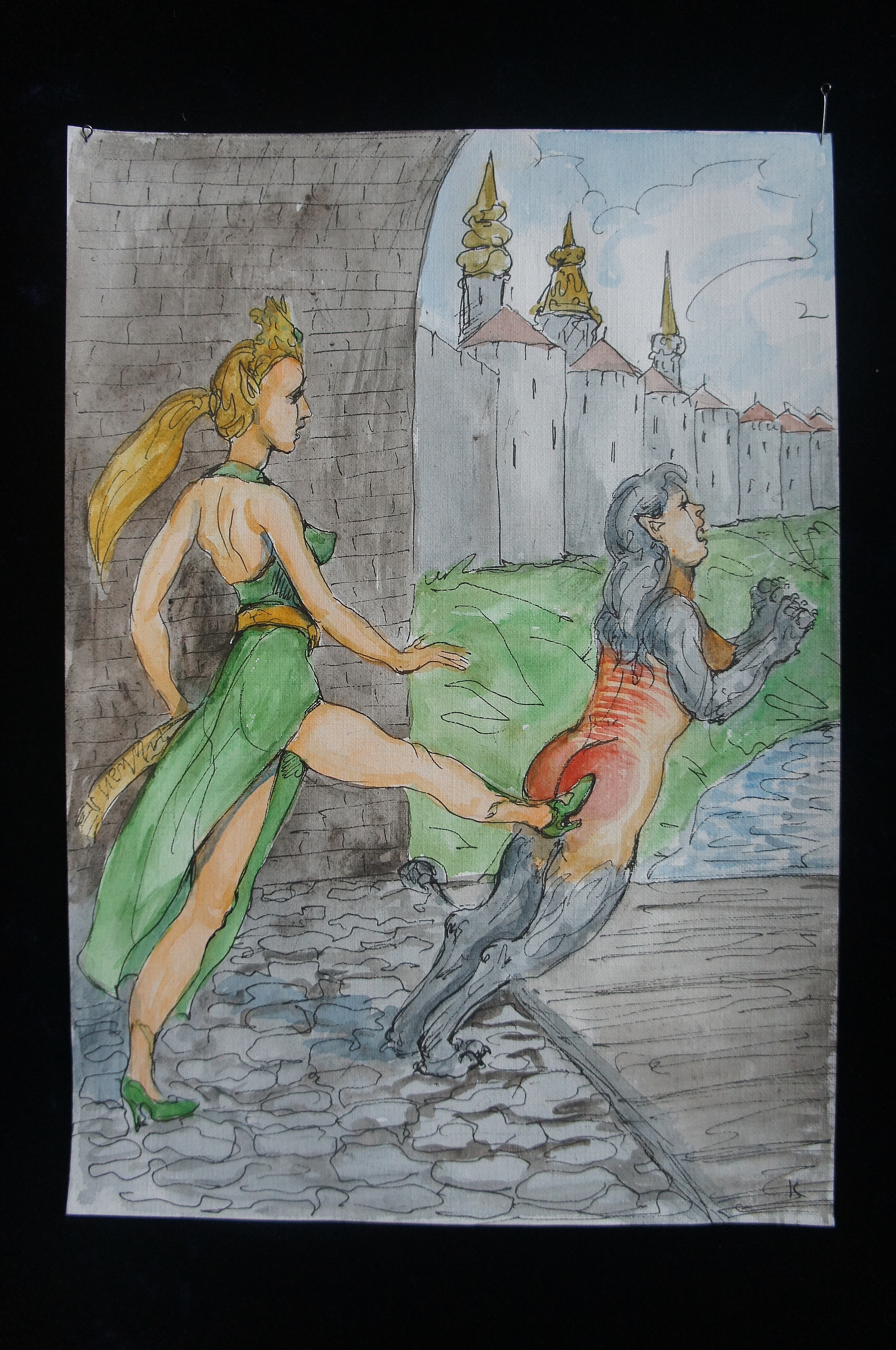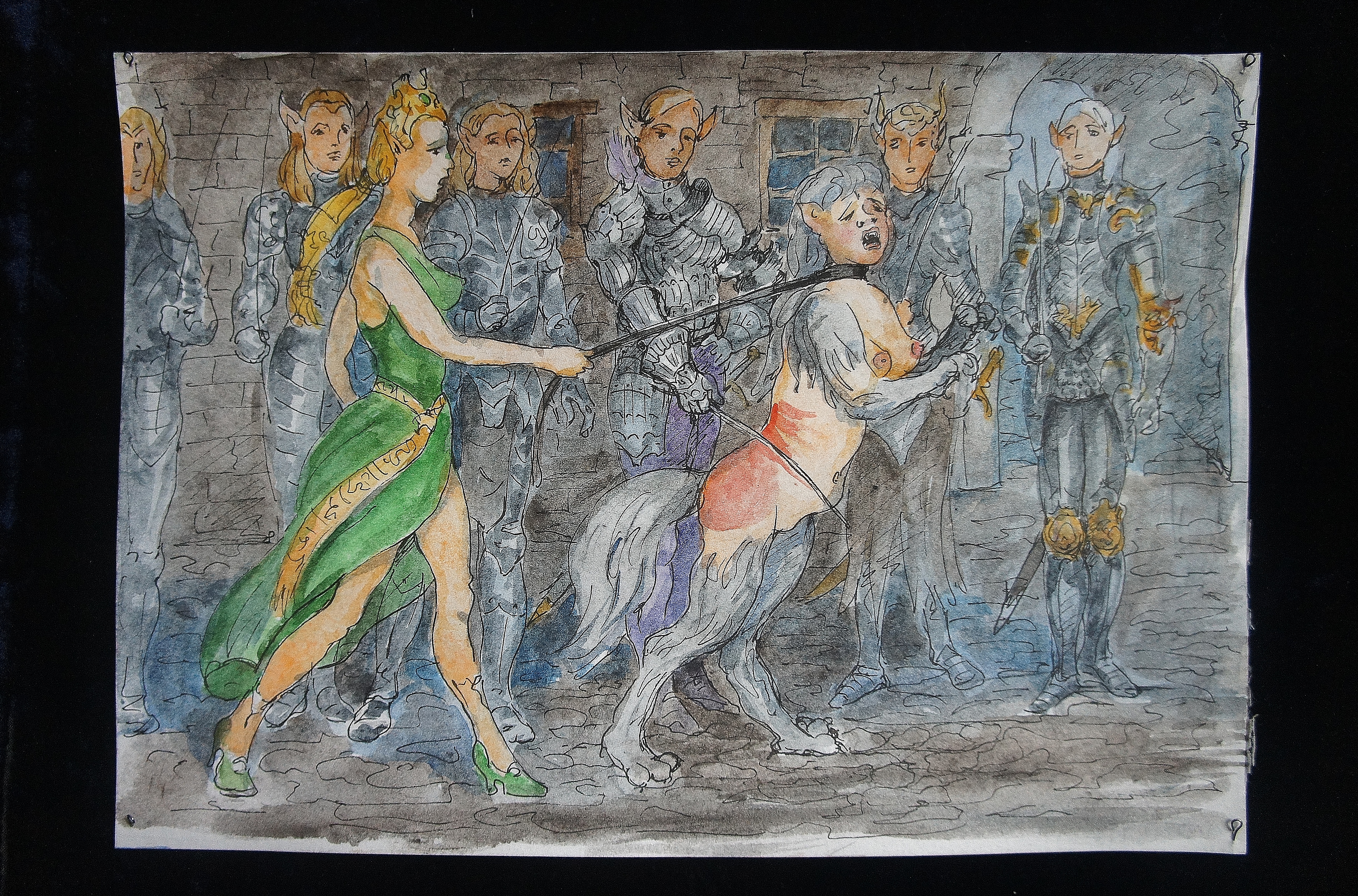 | When Livonna finally arrived to the lair, she saw Dame Athanasia perusing the grimoire, biting her lips in annoyance. She even didn't turn her head, when she heard her companion returned. "Milady, why did you leave me?" she-werewolf complained, sobbing "They punished me really terrible!" "Stop whining! You are used for it!" vampiress said crossly "There's a much bigger problem, then your sore ass!" "But I am in pain!" Livonna protested, sobbing and sniffing, while she was looking at her striped and sore back and bottom in the mirror. "The ritual I'm planning will be much more difficult, then I expected!" Athanasia said, still not even looking at her companion "I'm not that good with the magic! And you're absolutely useless for it! I need someone else! Someone, who is good enough in such a things!" "But..." "Shut up and don't stop me from thinking! Or do you want another thrashing?" Livonna just blubbered, feeling, how unfair life could ever be. Story inspired by Kalidwen's game Elven Kingdom (which you may found here - kalidwen.itch.io/elven-kingdom) |