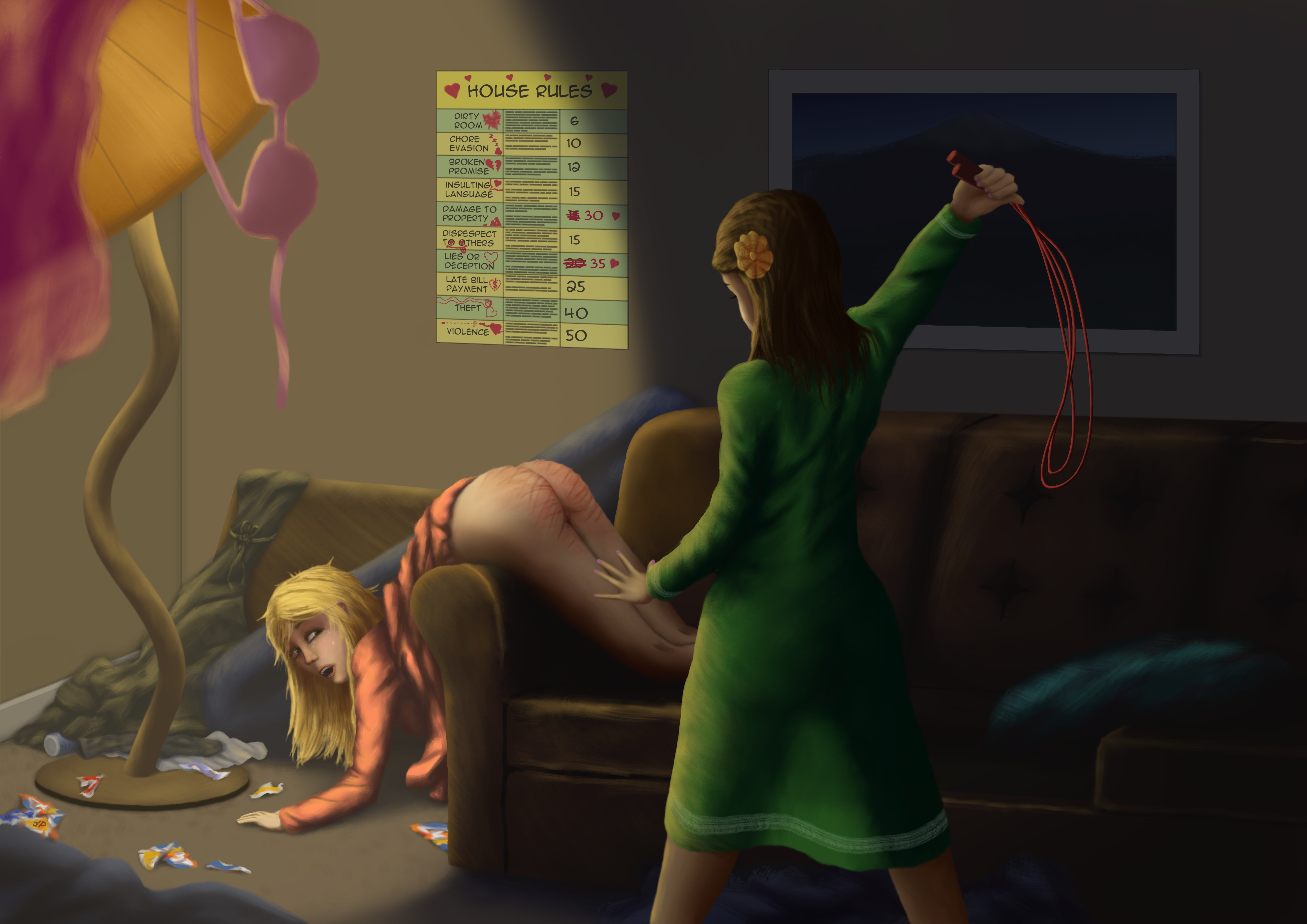 And then, she realised that she already was over Alicia’s lap, and her skirt was already being lifted and… oh no.