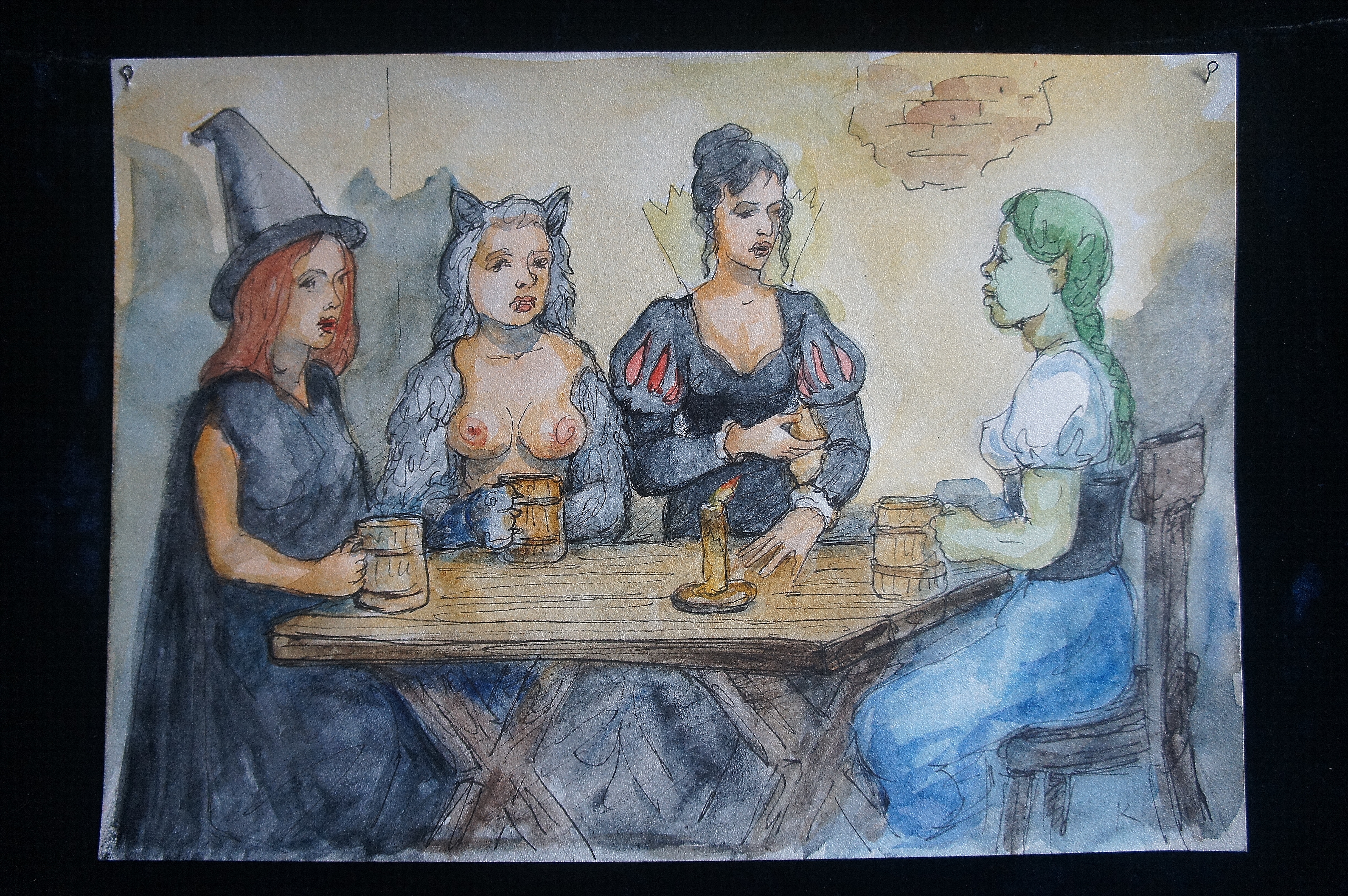 "Let's drink for the success!" said Kajira, raising her mug. Wolffang quickly clinked her mug to witch's. Livonna joined them, still unsure if she is happy or not, that their team got a newbie.